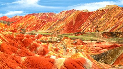 后乘車赴【七彩丹霞地質公園】(游覽時間約2.5小時),張掖七彩丹霞是中國發育最完好、造型最豐富的丹霞地貌,張掖丹霞面積廣闊,形態生動,惟妙惟肖,窗欞狀、宮殿式、泥乳狀、陡斜式,廊腰縵回、檐牙高啄、各抱地勢、壁峭柱聳、粗獷偉岸、巧奪天工,堪稱人間奇景;