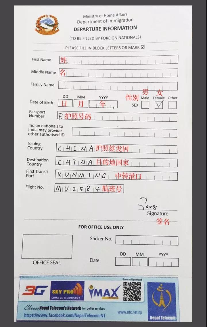 抵達(dá)加德滿都國(guó)際機(jī)場(chǎng),進(jìn)入航站大樓穿過(guò)走廊后,達(dá)到入境大廳。在桌子上,可以很容易找到入境卡。如果乘坐國(guó)內(nèi)航空公司飛機(jī)入境,飛機(jī)快抵達(dá)時(shí),空乘人員會(huì)給每位乘客分發(fā)一張入境卡,如果空乘沒(méi)有主動(dòng)給,自己可以在飛機(jī)上向空乘人員索要入境卡。入境卡是每個(gè)人都務(wù)必填寫(xiě)的,包括已辦理好簽證和準(zhǔn)備辦理落地簽的游客。