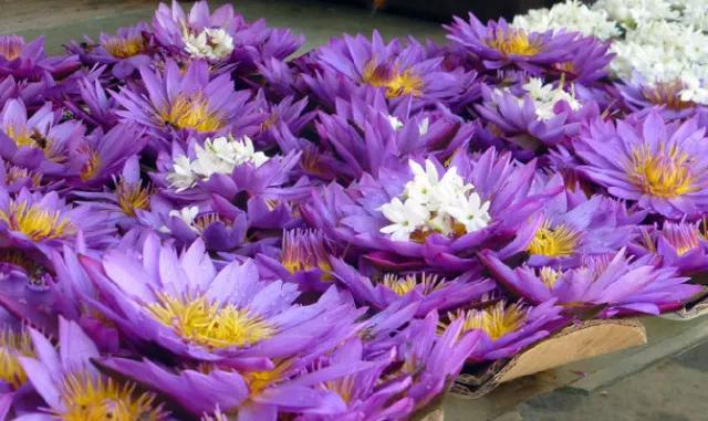 在斯里蘭卡古代文學(xué)作品和藝術(shù)品中對(duì)這種花多有描寫(xiě)。在佛牙寺附近,絡(luò)繹不絕的當(dāng)?shù)厝藭?huì)買上一捧象征圣潔的藍(lán)蓮花,滿懷虔誠(chéng)的走進(jìn)寺廟。