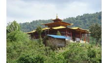 位于墨脫村南則瑪拉山上。是墨脫最大的寺院。建寺時間是在門巴東遷后不久,距今約8代人。據傳是由甘布寺中的活佛甘布建筑的,最初是一座有12面墻和東西南北四門的石木結構三層建筑,內有鍍金銅佛像多座。1950年毀于地震,后重修為東西兩門建筑。仁欽崩寺的建寺時間是在門巴東遷后不久,距今約8代人。這一建筑物很有特色,值得一看,寺院內外景色優美,古木鮮花將這里裝扮的古樸而典雅,讓人沉浸在這古老的文化和美麗的景色之中。