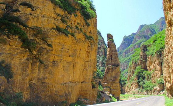 峽谷中,谷寬澗淺,如在盛夏時(shí)節(jié),陽(yáng)光普照,滿(mǎn)山滴翠,空氣清新,鳥(niǎo)語(yǔ)花香。再往前行,只見(jiàn)峰巒閉鎖,兩壁怪石交錯(cuò),明媚的陽(yáng)光已不復(fù)存在,冷風(fēng)習(xí)習(xí)、陰森逼人,只有一線(xiàn)天,亂云飛渡。順山路而進(jìn),時(shí)而陡壁迎面,山窮水盡;時(shí)而峰回路轉(zhuǎn),柳暗花明,別有洞天。當(dāng)?shù)匕傩罩v,四十里飛狐七十二道彎,彎彎有洞天美景,處處含勝景奇觀。峽谷一路前行,有“一炷香”、“雙箭孔”、“三仙思月”、“四將守門(mén)”、“五狗望月”、“六郎樁”、“七女峰”、“八仙洞”等奇峰異石,每一處奇觀都會(huì)給人留下無(wú)限遐想。四十里飛狐四十里景,迷宮奇物天作成。它以山峰怪異稱(chēng)奇,以深幽兇險(xiǎn)稱(chēng)奇,自古多少兵家因此處山兇地險(xiǎn)而爭(zhēng)戰(zhàn)駐守,多少文人墨客對(duì)奇景嘆妙稱(chēng)奇留下詩(shī)篇。這里公路通達(dá),車(chē)行順暢,更成為旅游觀光、尋覓歷史遺跡的絕好去處。