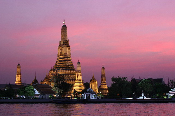 在湄南河及其支流上游覽,最引人眼球的,要算是那些宏偉壯麗、金光閃閃的寺廟、佛塔。這一群群多姿多彩的佛教建筑,與市內(nèi)高層建筑、居民住宅混建在一起,構(gòu)成一道奇特、亮麗的風(fēng)光。導(dǎo)游介紹:廟宇建在河左岸的較多,曼谷市內(nèi)約有一萬多間,所以泰國享有“千佛之國”、“黃袍之國”的聲譽(yù)。在湄南河及其支流兩岸,有幾座著名的寺廟:一是玉佛寺,它與大王宮相連,整座佛寺裝飾得金碧輝煌,富麗堂皇。大雄寶殿內(nèi)供奉的翡翠玉佛(釋迦牟尼),是泰國最重要最有價(jià)值的鎮(zhèn)國之寶。二是鄭王廟,位于湄南河西岸。它曾被定為鄭昭王(鄭昭王之父是華人)的御用寺院,其最富吸引力的建筑物是位于正中的“拍攀”大塔。這塔高79米,在晨曦之際,陽光照射,寶塔的頂峰會(huì)發(fā)出萬丈光芒,因此寺廟又被稱為黎明寺。三是臥佛寺,又稱菩提寺,它與鄭王廟正好隔岸相望,是曼谷最老和最大的寺院。寺內(nèi)供奉著一尊獨(dú)特大臥佛。這里一向被視為泰國第一所民間教育中心,故享有“泰國第一大學(xué)”之美譽(yù)。此外還有王孫寺、金佛寺、云石寺、金山寺等著名寺廟。
