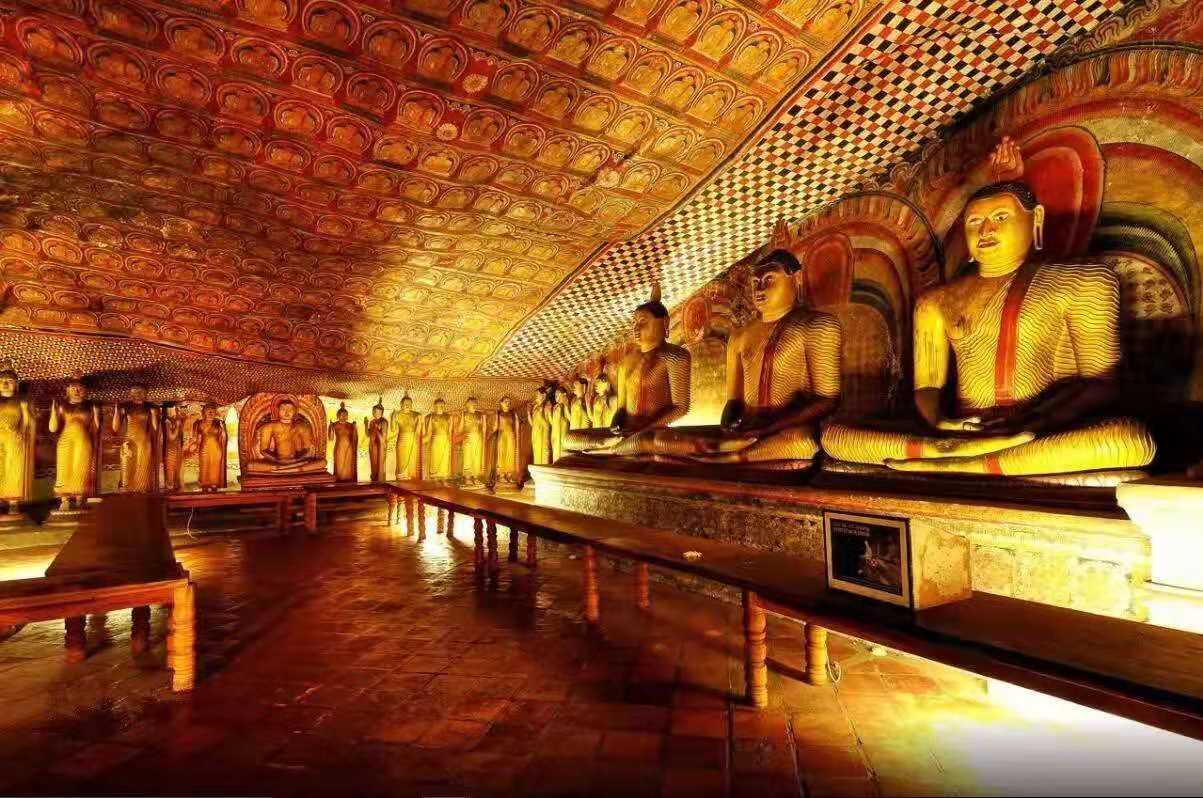 丹布勒金寺,是斯里蘭卡的朝圣之地,擁有220年的歷史。這座佛窟包括五所圣堂,是斯里蘭卡最大的、保存最完整的洞穴廟宇。覆蓋面積達(dá)2100平方米的壁畫及157尊雕像,極具宗教藝術(shù)價值,展示了佛教藝術(shù)的魅力。