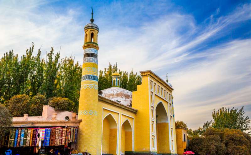 艾提尕爾清真寺是一個(gè)有著濃郁民族風(fēng)格和宗教色彩的伊斯蘭教古建筑群,坐西朝東。