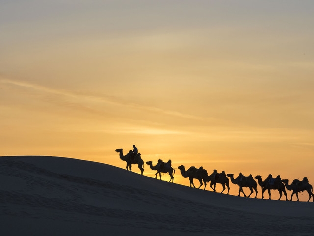在這坦蕩的大漠中,乘一峰駱駝觀日出日落胸中自有一番豪邁。而佇足大漠邊、面積達1000平方米的達斯坦古城宮殿遺址,每當大風過后,從流沙中露出的紅、黃、藍色的陶片和年代久遠的古幣,讓人在懷古幽靜中又有幾分尋寶的驚喜。