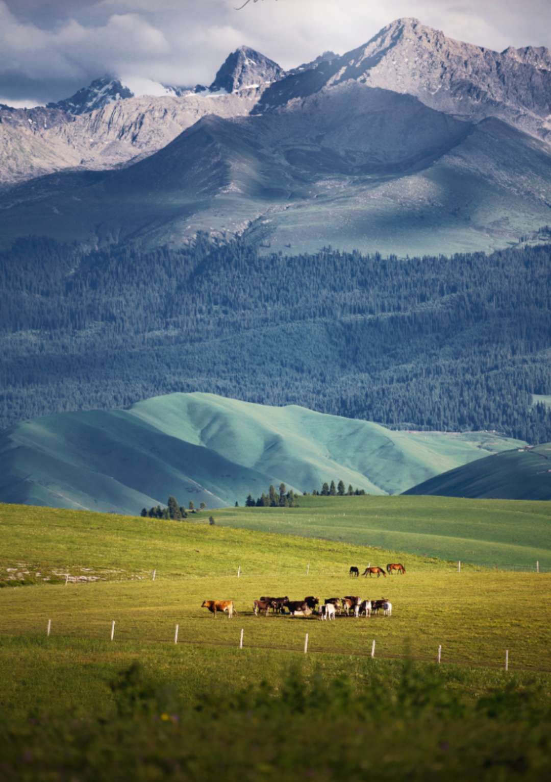 區(qū)內(nèi)海拔高度自1305~3957米,屬寒溫帶大陸性氣候,又因背靠天山北麓,春夏季多降水,涼爽舒適,冬季相對溫暖干燥,年平均氣溫6-9℃,極其適宜動植物生長。