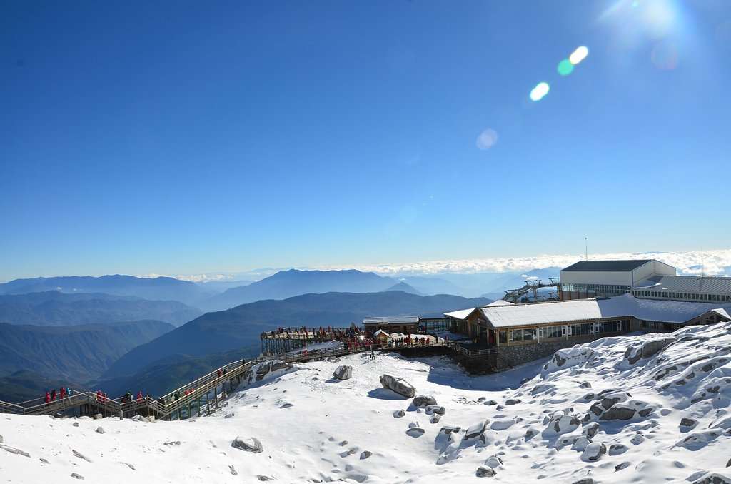 是雪山大索道的起點站,一片茂密的原始森林,這里海拔3356米,索道由此往上運行,直至雪山主峰扇子陡正下方的上部站,那里海拔4506米。版權(quán)所有山東聊城聊之旅國際旅行社有限公司,轉(zhuǎn)載必究!索道全長2914米,垂直高差1150米。是我國海拔最高的旅游客運索道。索道采用6人座豪華脫抱式全封閉吊箱,安全舒適,你的行程由下部站的茫茫林海,到上部站的白雪皚皚,中間運行時間僅為半小時,而你卻有經(jīng)歷四季之感。強烈的季節(jié)變化,冷暖的差異,景物的轉(zhuǎn)換,會使你興奮不已,因為玉龍雪山是云南亞熱帶的極高山地。從山腳河谷到峰頂具備亞熱帶,溫帶到寒帶完整的垂直自然景觀,而你在極短時間里旅游體驗到。