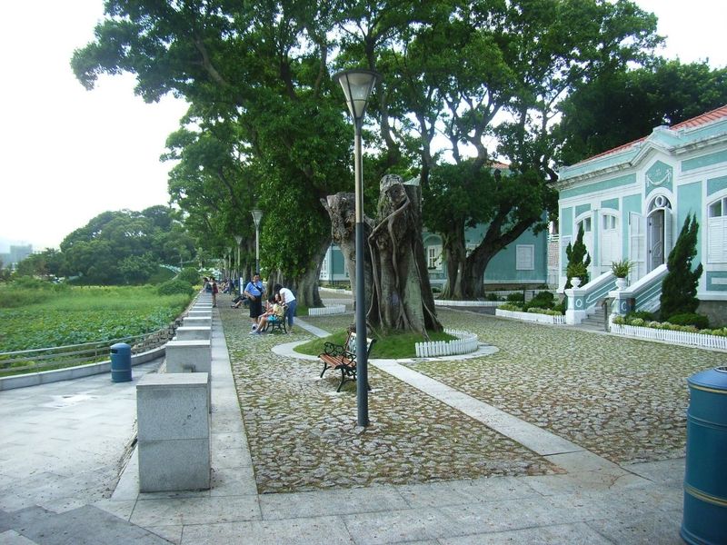 海灣昔日曾為水上飛機起落點,一九六八年后形成了海灘一大片紅樹林。岸邊砰石馬路旁,五座一列的葡式建筑,興建于一九二一年,如今掩映在綠樹中,成為游人喜到之處,更成為拍攝婚紗相的好地方。