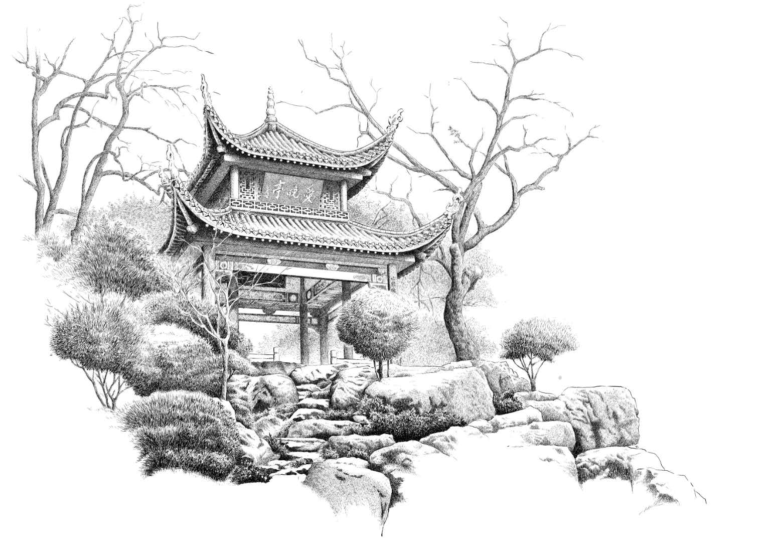 該亭抗日戰爭時期被毀,1952年重建,1987年大修,是由當時的湖南大學校長李達專函請毛澤東主席所書手跡而制。亭內立碑,上刻毛澤東主席手書《沁園春·長沙》詩句,筆走龍蛇,雄渾自如,更使古亭流光溢彩。該亭三面環山,東向開闊,有平縱橫十余丈,紫翠菁蔥,流泉不斷。亭前有池塘,桃柳成行。四周皆楓林,深秋時紅葉滿山。
