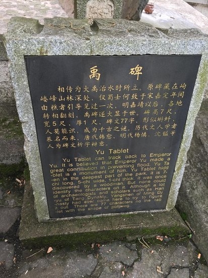 岳麓禹王碑高1.7米,寬1.4米,碑文分9行,每行9字,計77字,末行空四字。其文字形如蝌蚪,既不同于甲骨鐘鼎,也不同于籀文蝌蚪,很難辨認,很可能是道家的一種符錄,也有說是道士們偽造的。但遠在1200多年前,即為韓愈所聞及,還親登南岳岣嶁峰尋訪禹碑,并留有詩記。即使是唐宋時的贗品,作為紀念大禹治水之豐碑,也是十分珍貴的。全國有十幾處鐫立禹碑,據說皆由岳麓禹碑模本復刻。