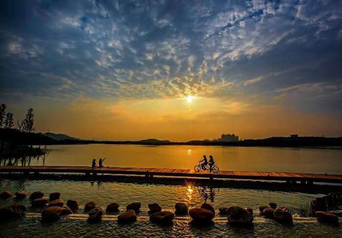 梅溪湖公園位于長沙市汽車西站附近,梅嶺公園總規劃面積約367畝,以318畝山體為主體,打造景觀欣賞主題公園,公園跨過龍王港河道與銀杏公園連成一條綠軸與桃花嶺公園隔湖相望,實現了河道、湖泊、景觀的銜接。 梅溪湖人工濕地位于長沙繞城高速東西兩側,占地面積120畝。工程為復合型人工濕地污水處理工藝,采用生物塘、水平潛流濕地、垂直潛流濕地和景觀表流濕地相結合的工藝組合。梅溪湖實業有限公司濕地項目負責人陳瀟介紹,梅溪湖人工濕地工程結合景觀構建,配套有人行步道、亮化、景觀小品、棧橋、景觀亭及附屬景觀綠化工程。桃花嶺山體公園位于梅溪湖片區南面,功能結構為“一軸、一帶、六組團”總面積為4360畝“一軸”即山脊觀光軸“一帶”即環山游覽帶“六組團”即洪寺庵水庫休閑度假組團、臘八寺休閑療養組團、東入口及自然博物館組團、麓溪浴度假組團、桃花谷文化組團和馬鞍山果園觀光組團。