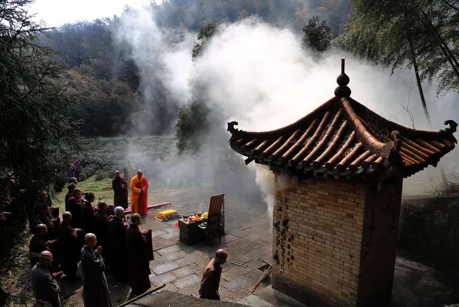 不久,法海禪師行單上的苦行生活圓滿結束,開始三年的閉關修行。各類勞作外緣均通身放下,一心參禪。三年圓滿時,不開關門,師父靈佑禪師親自到關門外直呼“法海”之名。禪師在關中應聲而出,關房門窗毫無損壞,是圓滿得道的標志。一時間,合寺內外僧俗大眾皆來親近問道,為避俗諱,乃受師命,游歷江西廬山等地,終至江蘇鎮江氏俘山的一片荒林中駐錫禪修。時隔不久,由當地信眾說明,乃知氏俘山中自己的駐地于東晉時曾建過名為澤心寺的道場。在密林的荒煙蔓草間,禪師居然尋獲到已被毀壞的殘佛,于是,法海禪師燃燒一節指,誓愿重修道場,為眾生樹立伽藍。于是開山挖田,刻苦勞作,漸漸贏得當地民眾支持,開始建設寺院。