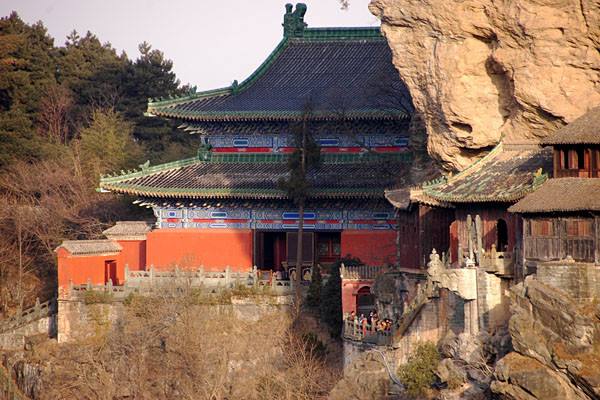 元至元二十二年至泰定五年(1285~1328年)在山中大建宮觀,南巖宮是其一。現(xiàn)僅存宮中石殿,石雕仿木結(jié)構(gòu),殿內(nèi)有“天子臥龍床”組雕和“三清”塑像,四面環(huán)立500鐵鑄靈官塑像,均生動逼真。殿外遠近有疊字峰、金鼎峰、滴水崖、崇福崖、白龍?zhí)兜葎倬埃邢缮綐情w之妙。版權(quán)所有山東聊城聊之旅國際旅行社有限公司,轉(zhuǎn)載必究!殿外崖前有雕龍石柱,橫出欄外2.9米,寬僅30多厘米,上雕盤龍,龍頭置一小香爐,俗稱龍頭香。石殿右下方崛起一峰,上建梳妝臺、飛身巖、相傳為“真武”舍身成仙之所。