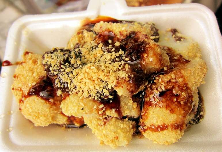 西安鏡糕:陜西的傳統(tǒng)小吃,以糯米為原料蒸制而成的形狀似圓鏡的糕。經(jīng)營(yíng)鏡糕者多系攤擔(dān)叫賣。清朝有詩云:“柳蔭槐下清晝長(zhǎng),鏡糕擔(dān)子亦生香”的詩句。還沒進(jìn)回民街,在鼓樓的下面就有很多賣鏡糕的小車,鏡糕放在很小的籠屜里,很小,上面有紅紅綠綠的調(diào)料,要吃的時(shí)候會(huì)再給蘸上芝麻和糖。