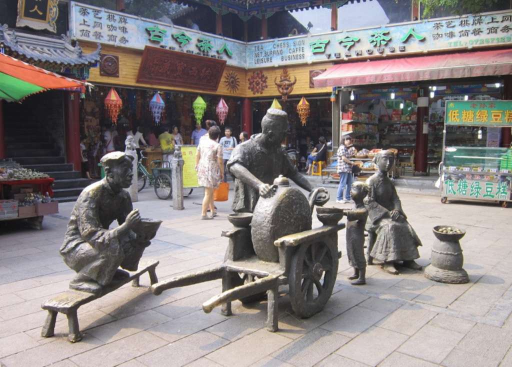 滿為患,連店門口也會(huì)擺滿桌椅。烤肉串、涮牛肚的煙火在不甚明亮的燈光下彌漫整條街,熙熙攘攘的人群都是邊逛、邊吃,看到小攤上中意的東西就和攤主還還價(jià)。還可以到鼓樓廣場(chǎng)的座椅上歇歇腳,看賣風(fēng)箏的小販把數(shù)十米長(zhǎng)的風(fēng)箏一直放到馬路對(duì)面的高樓頂上,一切都充滿真實(shí)熱鬧的生活熱情。