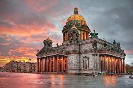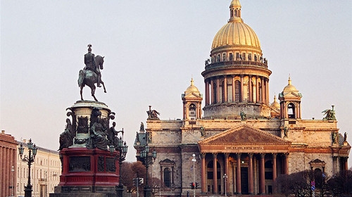 它位于涅瓦河左岸,從冬宮廣場穿過林蔭密布的亞歷山大花園便是伊薩基輔廣場。如果站在涅瓦河右岸圣彼得堡大學(xué)門前,對岸伊薩基輔教堂巨大的金圓頂赫然屹立在正前方。