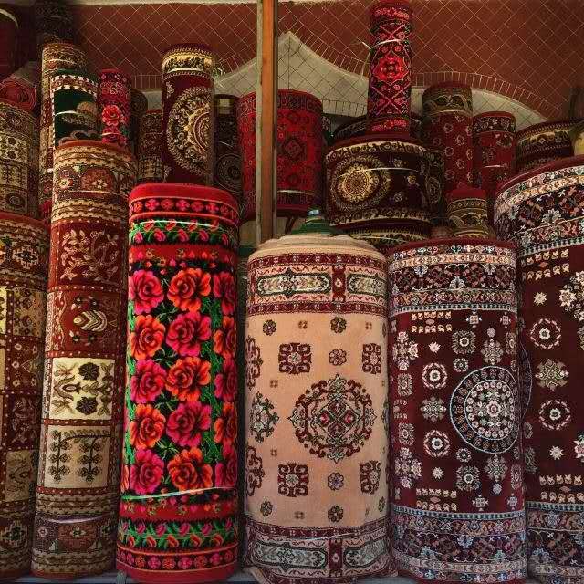 街道兩旁是匯集了上百家的手工作坊。漫步其中,鐵藝、木藝、皮具一類也并不讓人感到奇特,然而沙畫、刺繡、傳統樂器等手工藝品可就不由得您多看兩眼。說的再好,也有說不出的好;說的再全,也會有遺漏的珍品。畢竟這兒的手工作坊,生產的東西是五花八門,甚至于在那不起眼的小角落里坐著的老人,都可能是某個手工制作領域的專家,一時興起,隨手就做得出一件令人喜愛的活計。歷史的煙云為喀贊其蒙上了一層古樸與神秘的色彩。工匠、作坊,手工制品,因為一輩輩的懷著執著的傳承者存在,才會沒有隨著歲月而去。在這個好似鄉間的古老城區,似乎一切都停留在從前的某個時候。圖為喀贊其的藝人正在手工制作樂器。