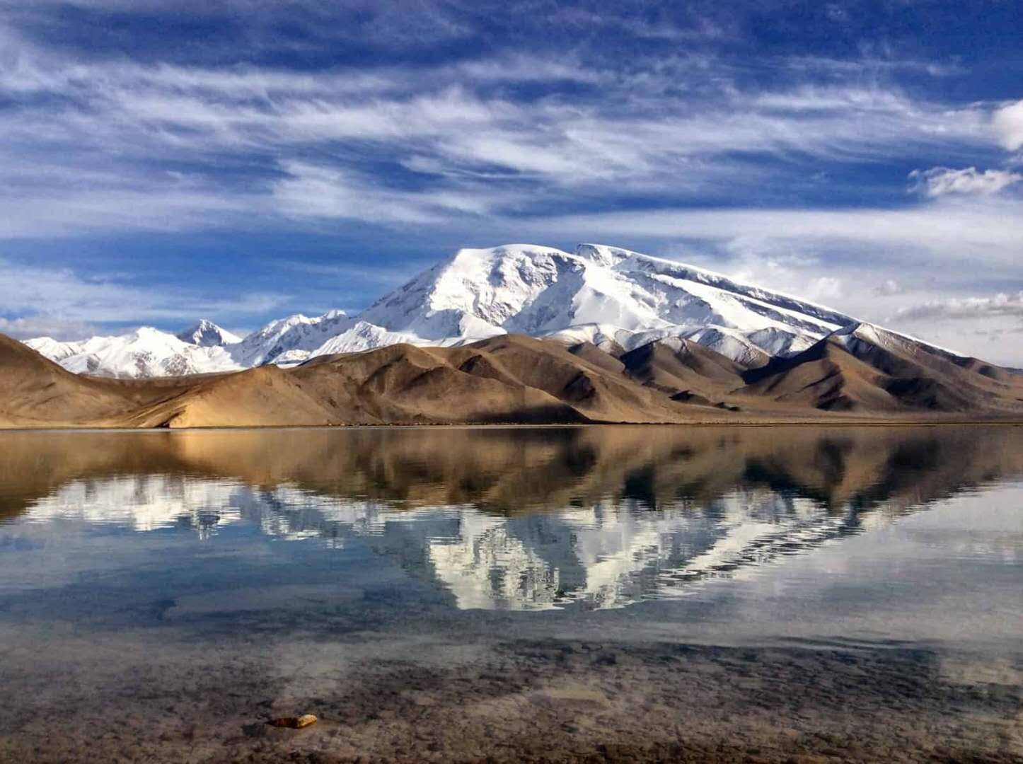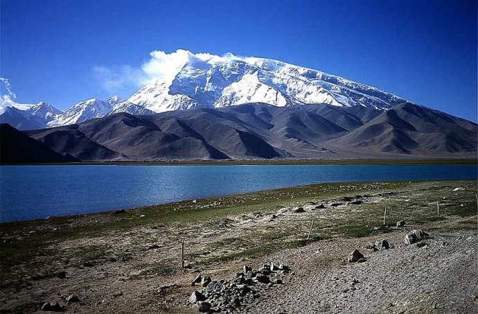 公格爾峰:與慕士塔格峰遙遙相望的是公格爾峰,公格爾九別峰,海拔分別為7649米,7530米,是昆侖山最高峰和次高峰,山頂常年積雪,山間懸掛著條條冰川,猶如飛流直下的銀瀑,又似隨風飄逸的素練。