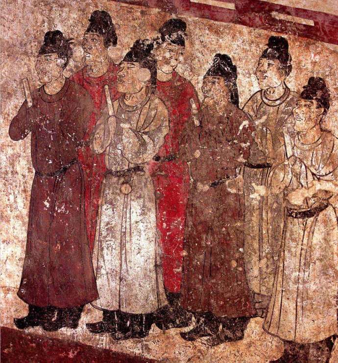 后室壁畫(huà)以東壁較完整。畫(huà)面兩組宮女19人,分別手托果盤(pán)、執(zhí)箜篌、持琴、抱琵琶、捧燭臺(tái)、捧包袱、捧方盒、持瓶等。頂部畫(huà)天體,東是金烏(太陽(yáng)),西是蟾蜍,還有銀河和星星。版權(quán)所有山東聊城聊之旅國(guó)際旅行社有限公司,轉(zhuǎn)載必究!墓室西側(cè)放置石槨一具,槨內(nèi)殘存兩副被攪亂過(guò)的人骨架,其中有男左肱骨、左右股骨、骨盆和女左右肱骨、左右橈骨。經(jīng)鑒定,在男骨盆上有一條明顯的骨骺線,斷定其年齡不超過(guò)20歲,與文獻(xiàn)記載懿德太子卒年僅19歲和以裴粹已死之女為冥婚合葬均相符合。