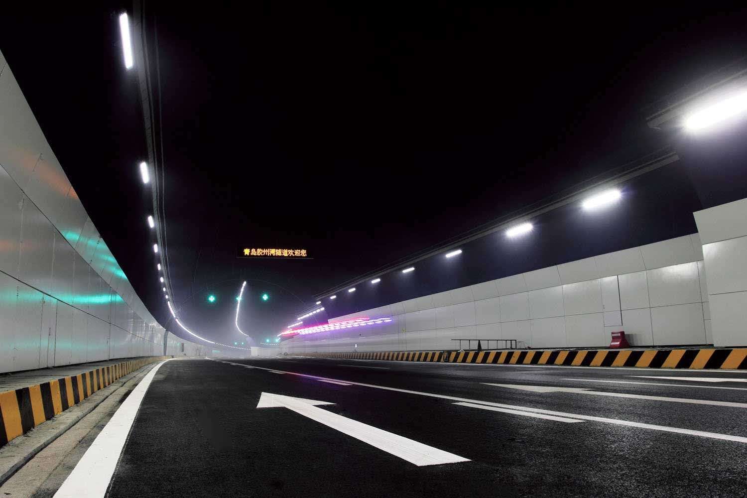 隧道全長7.8公里,其中海底段隧道長約3.95公里。設計時速80km/h,其中四川路及云南路主隧道為80km/h,臺西三路和團島二路匝道為40km/h。駕車5分鐘就可以橫跨膠州灣,從青島到黃島也只需要15分鐘。同時,四川路、云南路主隧道均為單向三車道,凈寬13.5米,匝道凈寬為8.5米、9.5米兩種寬度。在橋梁工程方面,橋面寬分為:14米、12.75米、8米三種標準寬度。高水平的路面完全能夠滿足市區上下班高峰期的要求。