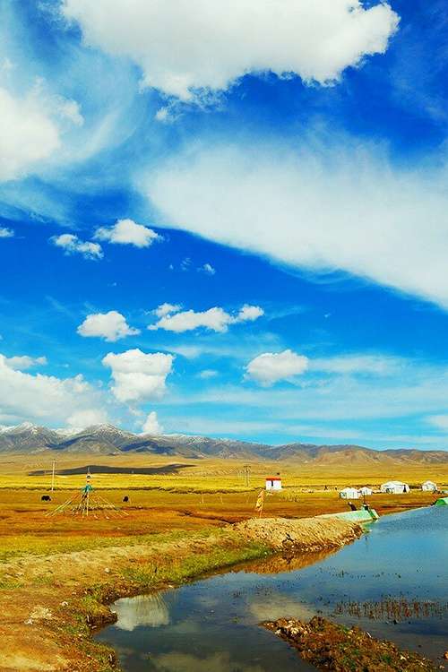 山下的倒淌河,這條華夏大地惟一一條我行我素倔強地從東流到西的倒淌河,凝聚了公主太多復雜的淚水,幽靜而溫柔地倒淌著,是倒淌那段千年不斷的感情?是倒淌那千年流不斷的眷念?文成公主途經赤嶺作短期停留的歷史事實,給漢藏人民留下了美好的記憶,青海民間至今流傳著這樣的故事:當文成公主行至赤嶺,將要離別唐朝管轄的土地,心中一片愴楚。向前西望吐蕃,天高云低,草原蒼茫;回頭東望長安,更加留戀故土。遂拿出皇后賜予的“日月寶鏡”,從中照看長安景色和親人,不禁傷心落淚,思鄉的淚水匯集成了倒淌河,由東向西,流入青海湖。但當她想到身負唐蕃聯姻通好的重任時,便果斷地摔碎了“日月寶鏡”,斬斷了對故鄉親人的眷戀情絲,下定了毅然前行的決心,義無反顧地走上了西行的道路。繼這次和親的70年后,唐又以宗室女金城公主嫁給吐蕃贊普棄隸縮贊,金城公主沿著文成公主走過的路,又一次經過了日月山。金城公主入蕃和親,對于促進唐蕃經濟文化交流,同樣具有重要的意義。今天,日亭、月亭在當年公主駐足的地方高高聳立,站在亭前西望,當年崎嶇艱難的路程如今已變成了連接漢藏人民的康莊大道。