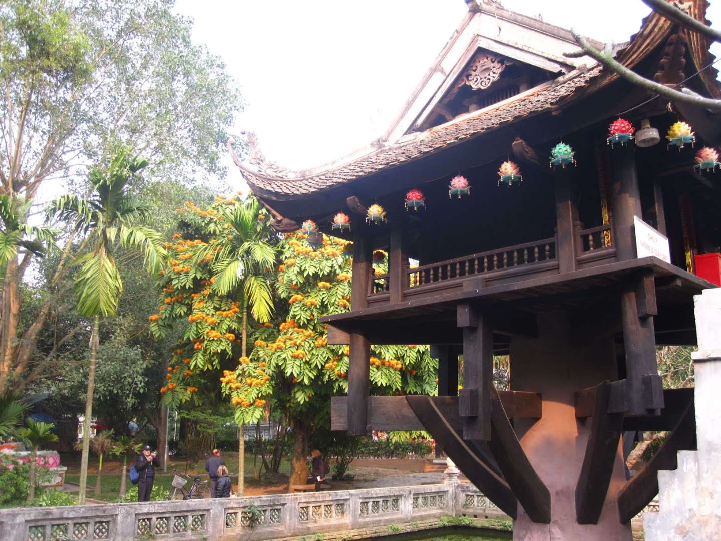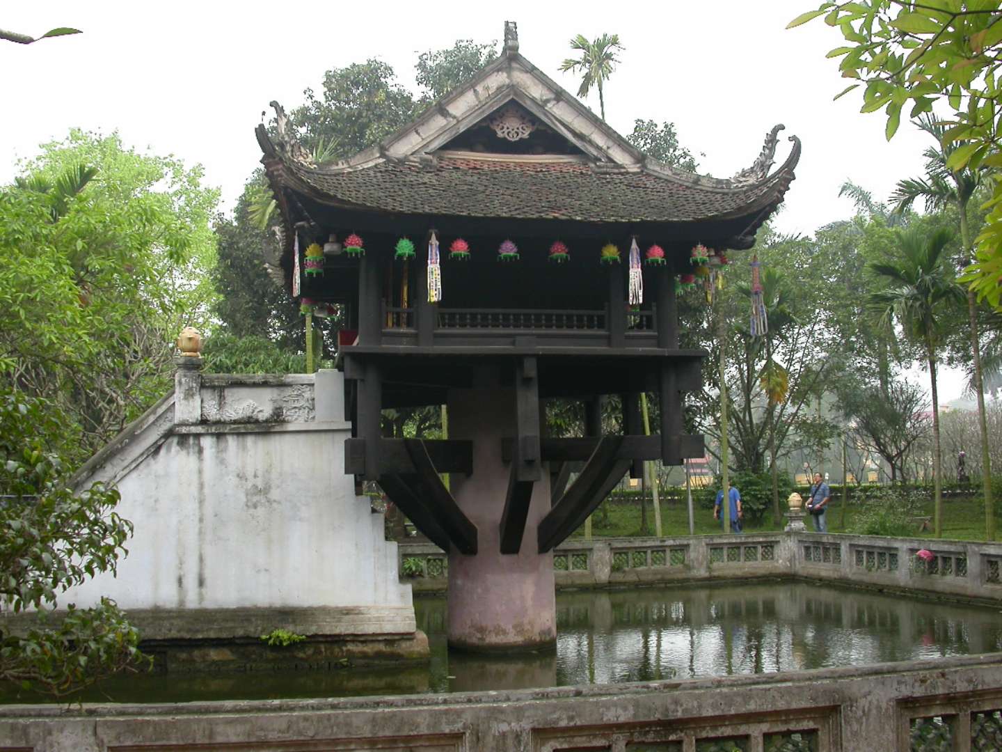 獨(dú)柱寺是越南獨(dú)具一格的古跡之一,位于河內(nèi)巴亭廣場(chǎng)西南,因建在靈沼池中一根大石柱上而得名。