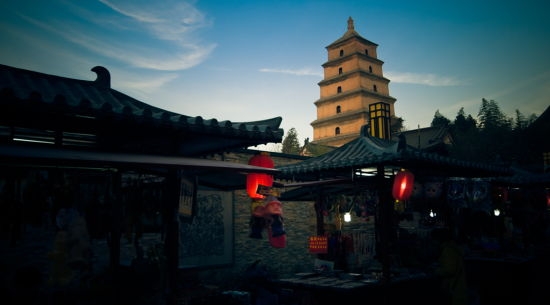 分別位于大慈恩寺東西兩側,通過“百姓祝壽”、“皮影大戲”、“懸壺濟世”、“街頭胡樂”、“角力爭雄”等一系列雕塑小品,把唐朝百姓的市井生活描繪的活靈活現,這些雕塑小品人物細膩逼真,反映出唐朝民眾真實的生活場景,體現了盛唐時代社會的繁榮、富強。步行街兩旁有很多特色小店與攤點,出售各種特色旅游紀念品。
