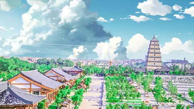 大雁塔位于南郊大慈恩寺內,是全國著名的古代建筑,被視為古都西安的象征。大雁塔北廣場位于大雁塔腳下,東西寬480米、南北長350米,占地252畝,定大雁塔為南北中心軸。前廣場設有山門及柱塔作為雁塔北路與廣場軸線之轉接點。由水景噴泉、文化廣場、園林景觀、文化長廊和旅游商貿設施組成。南北高差9米,分級9級,由南向北逐步拾級形成對大雁塔膜拜的形式。整個工程建筑面積約11 萬平方米,總投資約5億元。廣場整體設計概念上以突出大雁塔慈恩寺及唐文化為主軸,結合了傳統與現代元素構成。北廣場有四座石質牌坊,它們既是廣場景觀的標引物,又是北廣場的招牌和景觀。四座牌坊均用白麻石材貼面,形成中間高兩邊低的三門樣式,呈現出平衡、穩定、簡潔、大氣的特點。牌坊題辭用唐人崇尚的字體書寫,中間大匾額用顏真卿楷書大字,大氣磅礴;兩邊上下聯匾額題詞用王羲之、王獻之行書字體,典雅生動。"大唐盛世"帶來了各行各業的空前繁榮和進步,此雕塑特意從詩歌、書法、茶道、醫藥等領域中選定了"詩仙"李白、"詩圣"杜甫、"茶圣"陸羽、"詩佛"王維、"唐宋八大家之首"韓愈、"書法家"懷素、 "天文學家"僧一行、"藥王"孫思邈八個精英人物,以逼真寫實的雕塑手法展現在人們的面前。