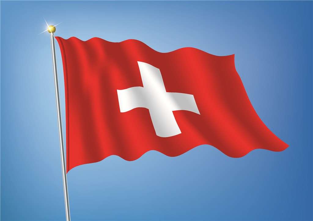 瑞士國旗呈正方形。旗底為紅色,正中一個白色十字。