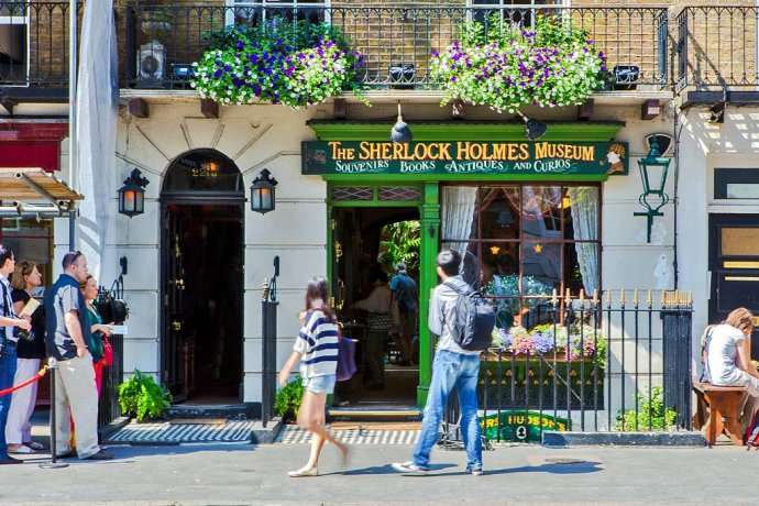貝克街221B號(hào)(及239號(hào))是于1990年成立的福爾摩斯博物館(Sherlock Holmes Museum),館內(nèi)的布置擺設(shè)都以小說中提及的情節(jié)為佐,更增添福爾摩斯舊居的真實(shí)性。這是個(gè)精巧迷人的觀光場(chǎng)所,福爾摩斯與華生醫(yī)生的辦公室都依據(jù)故事內(nèi)容重新裝潢。你可以坐在一樓書房的爐子旁,試戴福爾摩斯的帽子,并拿著他的煙斗,模仿他的姿勢(shì)。再走一點(diǎn),就會(huì)看到真正的221B號(hào),它現(xiàn)在是國(guó)家教堂,這里每周都會(huì)收到從世界各地的福爾摩斯迷寄來的一百多封信。親自造訪教堂的人們,可以免費(fèi)拿到福爾摩斯簡(jiǎn)冊(cè)與明信片。