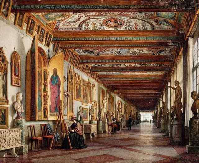 這個被稱為佛羅倫薩“無冕王”的貴族之家,卻有愛好、扶植和保護文化藝術的優良傳統。館址為1559年建立的、G·瓦薩里設計的4層樓——烏菲齊宮,本身即為一幢文藝復興建筑的杰作。后經幾次改建。二、三百年間美第齊家族的成員把從各地搜集來的藝術品集中到“烏菲齊”,從而形成了烏菲齊公共博物館。1581年,美第奇家族收藏的藝術品對外開放。1765年正式對外開放,擴展原展室,展品中有L·達·芬奇的《博士來拜》、米開朗琪羅的《圣家族》、S·博蒂切利的《春》、提香的《烏爾比諾的維納斯》、拉斐爾的自畫像以及A·曼泰尼亞、科雷喬等大師的名作。20世紀初,建立了版畫、素描館,各類專室紛紛建立。