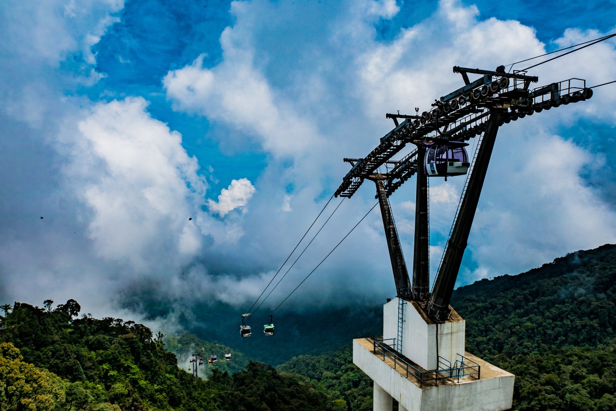 云頂纜車從位于梧桐再也的云頂纜車站出發(fā),直達美星酒店。云頂纜車由馬來西亞第四任首相拿督斯里馬哈蒂爾·本·穆罕默德醫(yī)生于1997年2月21日主持開幕。云頂纜車以每8人一車廂并在一小時內(nèi)載送2000名乘客上山。它的極速為每秒6公尺,只需大約15分鐘便能完成3.38公里長的登山路程。隨著纜車的緩緩上升,馬來西亞特有的奇花異草,以及各種只有熱帶才有的植物、動物和鳥類躍然眼前。往往纜車坐到半山腰就能看到云霧繚繞,如入仙境,到了山頂,室外也經(jīng)常是云里霧里,看來“云頂”這個名字確實也是有點說法的。
