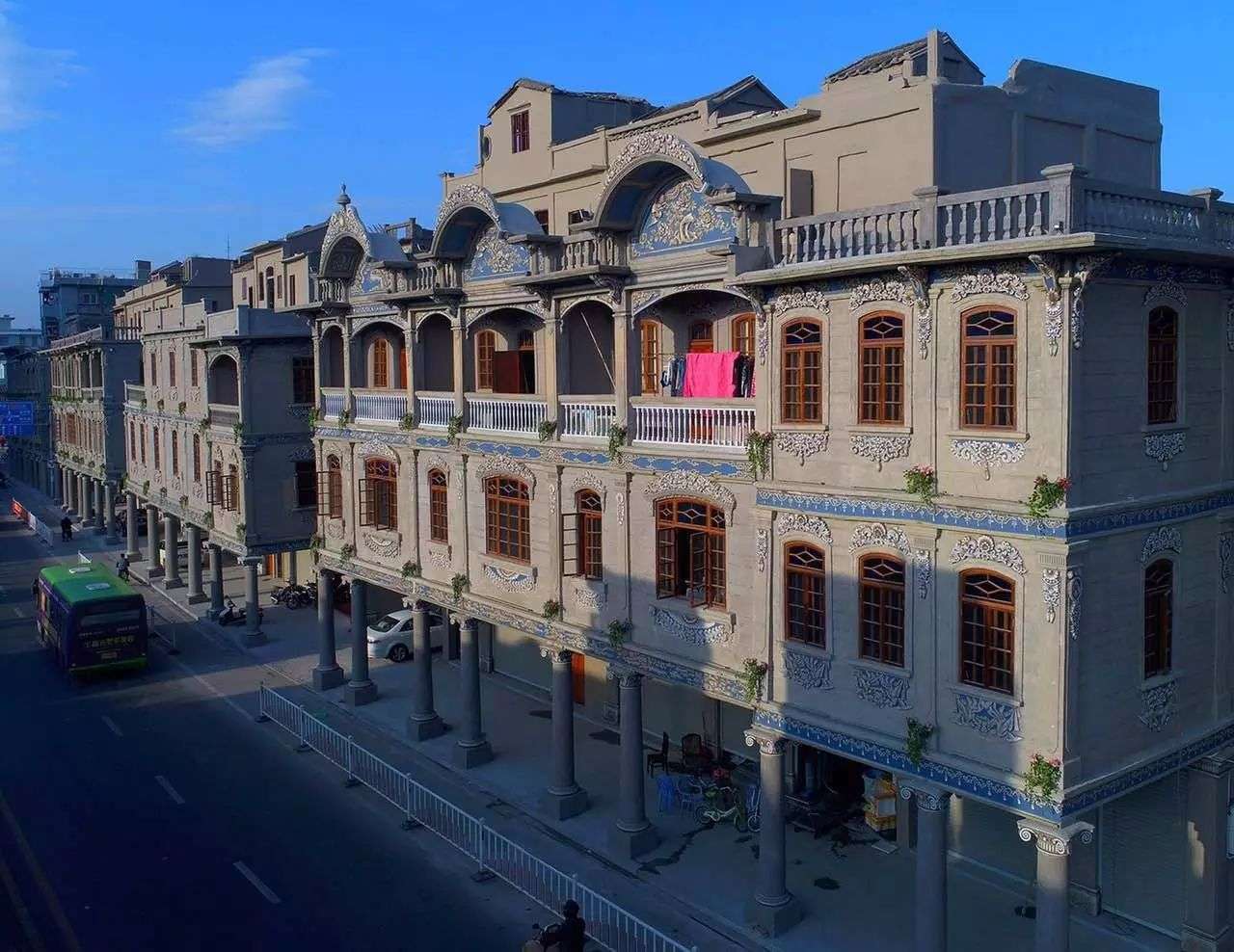 這種歐陸建筑與東南亞地域特點相結合的一種建筑形式可以擋避風雨侵襲,擋避炎陽照射,造成涼爽環境,因此在東南亞十分風靡,隨后也傳入華南地區。騎樓是我國福建、廣東、海南、廣西等沿海僑鄉特有的南洋風情建筑,都是當年華僑從南洋返鄉所建。