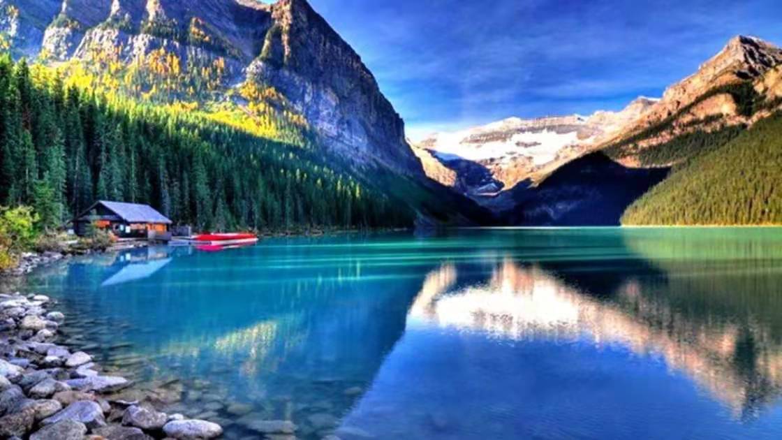 它以風姿卓約的維多利亞山為屏障,山水相依,形成一幅完美的風景照。露易絲湖被譽為“落基山脈上的藍寶石”,這里也是北美最受攝影師青睞的湖泊。露易絲湖源自維多利亞冰川,湖水碧綠清澈,遠望就像鑲嵌在落基山脈中的一顆翡翠。