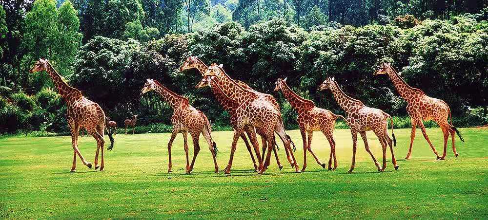 長隆野生動物世界生活著以“十大世界珍稀動物國寶”為代表的500多種珍稀動物,包括中國的大熊貓、澳大利亞的考拉、非洲黑犀牛、泰國亞洲象、馬來西亞馬來貘、塞拉利昂倭河馬等等……這些世界珍奇動物在這個動物天堂里安居并開枝散葉,使長隆野生動物世界成為世界最為重要的野生動物繁育保護基地之一。 長隆野生動物世界大多數動物都已形成龐大的種群,斑馬、熊貓、角馬、長頸鹿、梅花鹿、亞洲黑熊、獼猴、亞洲象、非洲獅、老虎等動物都形成了數十只乃至數百只的大種群,并仍在不斷發展壯大,為世界動物園所罕見。