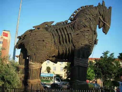 公元前9世紀古希臘詩人荷馬的史詩《伊利亞特》敘述的"特洛伊木馬計"就發生在這里。特洛伊王子帕里斯來到希臘斯巴達王麥尼勞斯宮作客,受到了麥尼勞斯的盛情款待,但是,帕里斯卻拐起了麥尼勞斯的妻子。麥尼勞斯和他的兄弟決定討伐特洛伊,由于特洛伊城池牢固,易守難攻,攻戰10年未能如愿。最后英雄奧德賽獻計,讓邁錫尼士兵燒毀營帳,登上戰船離開,造成撤退回國的假象,并故意在城下留下一具巨大的木馬,特洛伊人把木馬作為戰勝品拖進城內,當晚正當特洛伊人酣歌暢飲歡慶勝利的時候,藏在木馬中的邁錫尼士兵悄悄溜出,打開城門,放進早已埋伏在城外的希臘軍隊,結果一夜之間特洛伊化為廢墟。荷馬史詩敘述的這段事跡,成為西方國家文學藝術中傳誦不絕的名篇。
