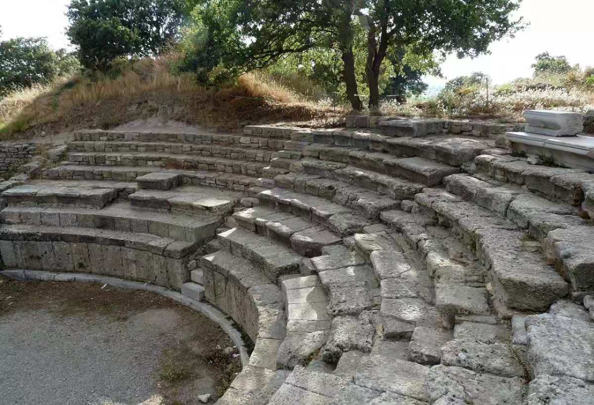 特洛伊城遺址是土耳其古城,位于恰納加萊南部,北臨達達尼爾海峽,坐落在平緩的城堡山腳下。這里山巒青翠,流水潺潺,柑桔樹和橄欖樹滿山遍野,紅瓦白墻的農舍點綴其間,是土耳其愛琴海地區典型的農村風光。