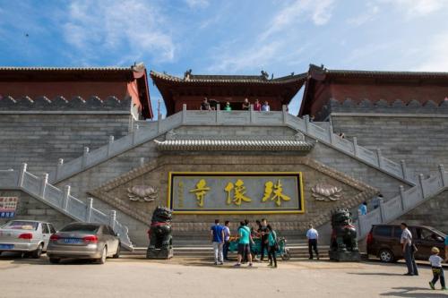 殊像寺為典型漢式寺廟,東西l15米,南北約200米,占地面積2.7公頃。采用庭園布局手法,大規模疊砌假山,散植松樹,創造了自己的獨特風格。