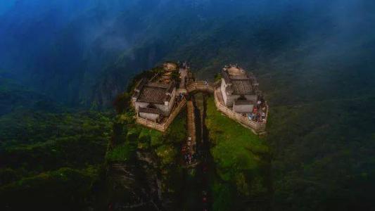 紅云金頂:山峰拔地而起,垂直高差達(dá)百米。上半部分一分為二,由天橋鏈接,兩邊各建一廟,一邊供奉釋迦佛,一邊供奉彌勒佛。由此印證現(xiàn)代佛(釋迦牟尼)向未來(lái)佛(彌勒佛)的交替。晨間紅云瑞氣常饒四周,人稱(chēng)紅云金頂。