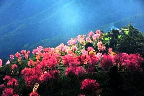 無量山櫻花谷,位于云南大理州南澗縣無量鎮德安村委會境內,每年11月底或12月初(根據氣候),花期25天左右,櫻花谷面積約2000畝。