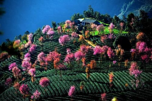 無量山櫻花谷,位于云南大理州南澗縣無量鎮德安村委會境內,在云南大理華慶茶業有限公司的茶莊園內,與靈寶山國家森林公園相鄰,距離縣城51公里。北緯24°45' 50" 東經 100°30' 32" ,海拔2175米。花期每年11月底至12月初,25天左右,櫻花谷面積約2000畝。
