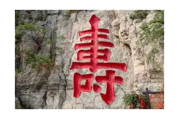 山陰處海內(nèi)外罕見的巨大鐫刻"壽"字是“壽比南山”典故的出處,該字結(jié)構(gòu)嚴謹,端莊大方,坐南朝北,通高7.5米,寬3.7米,單是下部的"寸"字就高2.22米,為大個頭的漢子所不及,故當(dāng)?shù)赜?壽比南山"、"人無寸高"之說。這個"壽"字是明嘉靖年間衡王府內(nèi)掌司冀陽周全所獻書。端詳此"壽",字體揮灑俊逸,筆劃圓泣流暢,雖千鑿百斧雕成,卻不露分毫痕跡,充分體現(xiàn)了勞動人民的聰明智慧,是書法石刻藝術(shù)的瑰寶。自此,青州官民,朝野上下,去云門山拜壽的人絡(luò)繹不絕,已有400余年的歷史了。眾從的中外游客都把能到云門山參拜大壽字作為自己最大的心愿。