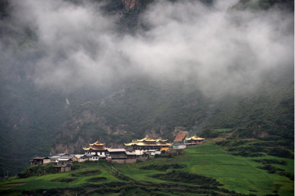 扎尕那山勢奇峻、云霧繚繞、宛如仙境。藏寨內游牧、農耕、狩獵和樵采等多種生產活動合理搭配和互補融合,成為人與自然和諧相處的一個典范