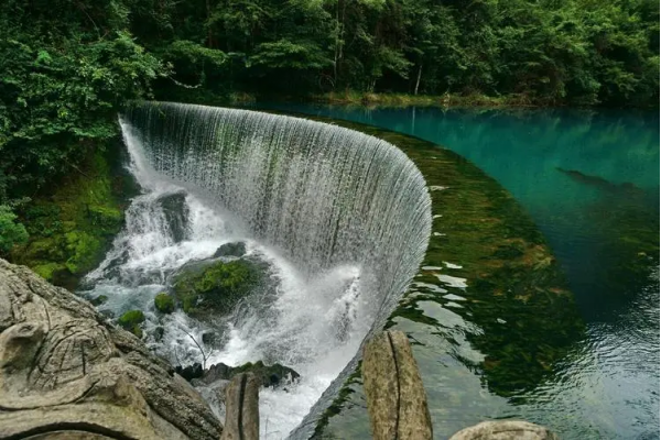 犀牛潭是九龍河大瀑布下面的最后一個(gè)潭,從這個(gè)潭開始,就是站在大瀑布上可以一收眼底的一目十瀑。從以堵勒村及鴨子龍?zhí)哆^(guò)河對(duì)岸,就從潭上邊河床上的蛤蟆石走過(guò)。這個(gè)潭也不大,但就是怪,有時(shí)從上邊流下來(lái)的水是清的,可再?gòu)奶独锪鞒鰜?lái),就變成了渾的。老輩人說(shuō):“那是正好碰上犀牛翻身哩!”