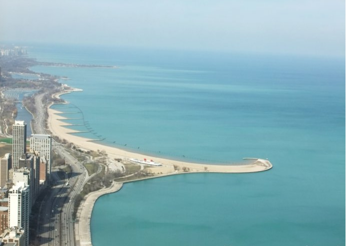 密歇根湖也叫密執安湖,是北美五大湖中面積居第三位,唯一全部屬于美國的湖泊。湖北部與休倫湖相通,南北長517公里,最寬處190公里,湖盆面積近12萬平方公里,水域面積57757平方公里,湖面海拔177米,最深處281米,平均水深84米,湖水蓄積量4875立方公里,湖岸線長2100公里。有約100條小河注入其中,北端多島嶼,以比弗島為最大。面積5.8萬平方公里。最深282米,深度由北向南漸減。湖面海拔177米,與休倫湖相當,借麥基納克水道相連。與密西西比河則借伊利諾伊—密歇根運河相通。