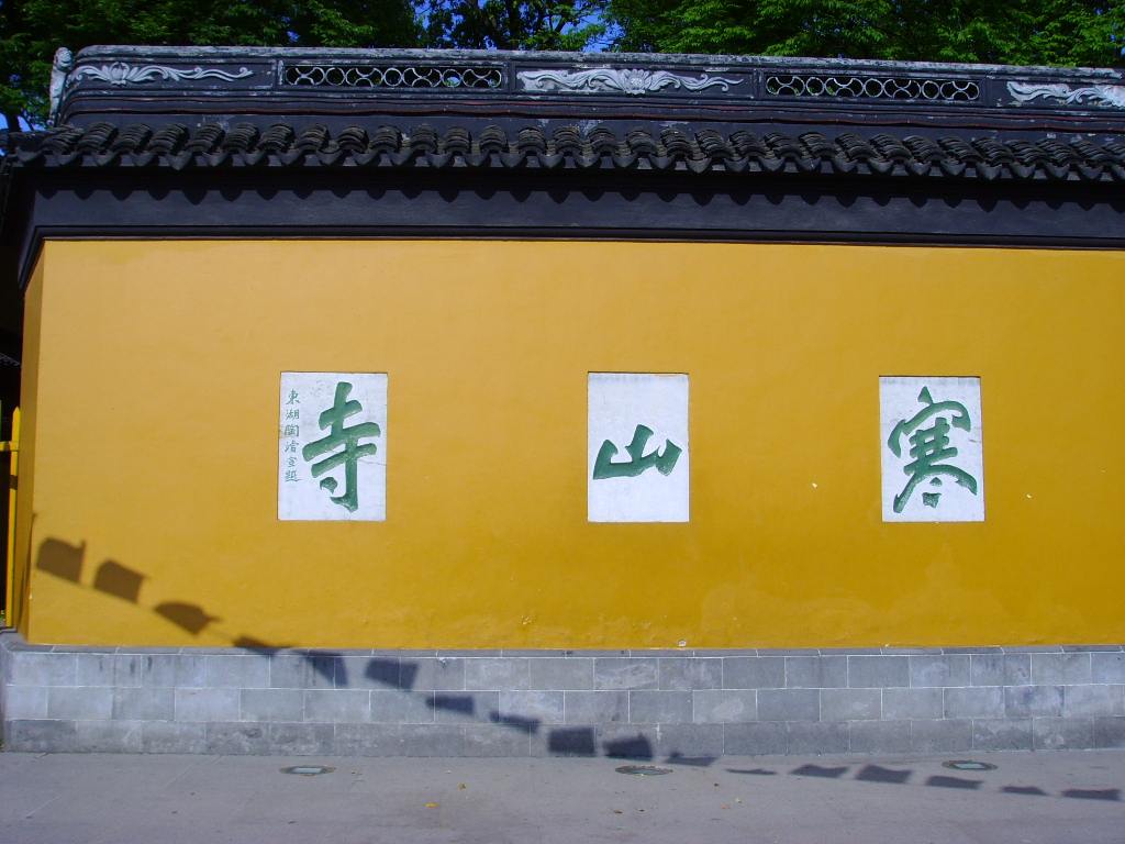 寒山寺(Hanshan Temple) 寒山寺在蘇州城西閶門外5公里外的楓橋鎮,建于六朝時期的梁代天監年間(公元502-519年),距今已有1400多年。原名“妙利普明塔院”。唐代貞觀年間,傳說當時的名僧寒山和拾得曾由天臺山來此住持,改名寒山寺。