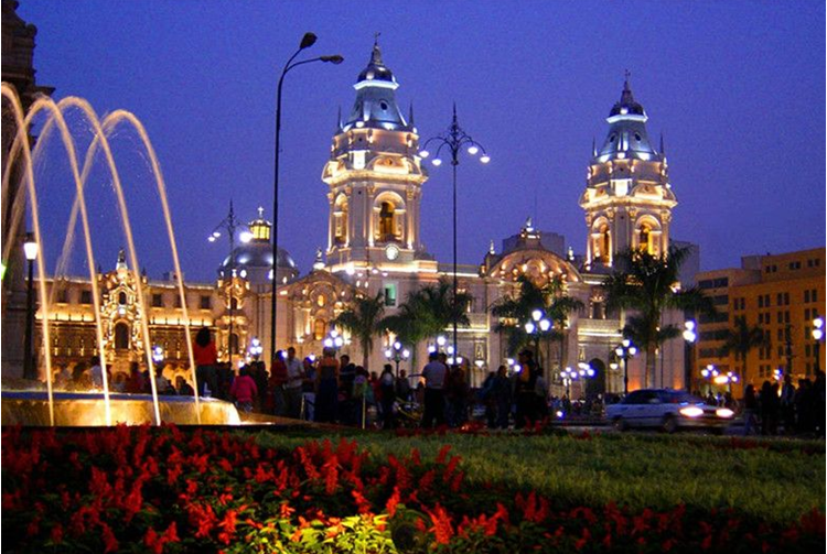 玻利瓦爾廣場是根據(jù)西班牙王室命令建造的西班牙式大廣場,其中的大教堂是在原西班牙教堂的舊址上興建的。大教堂氣勢(shì)宏偉,兩端的兩座鐘樓高高聳立,塔尖直指蒼穹。廣場中央,一座西蒙•玻利瓦爾騎著駿馬的高大雕像矗立在約3米高的碑身上,雄偉莊嚴(yán);四周裝有帶彩燈的噴泉,每到夜晚,彩燈大開,泉水四射,流光閃爍,五彩繽紛。