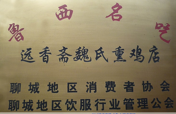 遠(yuǎn)香齋魏氏熏雞產(chǎn)于山東省聊城市東昌府區(qū)北關(guān)路東魏氏熏雞老店,本店以制作、銷售遠(yuǎn)香齋魏氏熏雞而聞名華夏。熏雞是我國(guó)的獨(dú)有產(chǎn)品。遠(yuǎn)香齋魏氏熏雞以其獨(dú)特的風(fēng)味堪稱熏雞精品。它是先祖魏永泰于1810年(清嘉慶十五年)創(chuàng)制的,歷經(jīng)魏兆松、魏世忠、魏金鑒至魏立華,已是第五代傳人,距今已有200年的歷史。版權(quán)所有山東聊城聊之旅國(guó)際旅行社有限公司,轉(zhuǎn)載必究!它的選料精良、配料精當(dāng)、制作精細(xì)、挑選肥嫩無病的活雞,經(jīng)加工后,在鋸末煙頭上熏制而成,熏雞皮縮裂,胸腿肉外露,掐之無彈性,色澤栗紅,嚼有余香,即可下酒,又可佐茶,具有脫水適宜,易于存放,便于攜帶的特點(diǎn),產(chǎn)品銷售往全國(guó)各地,是宴賓饋贈(zèng)之佳品被列為聊城名吃之首,深受廣大消費(fèi)者的厚愛。