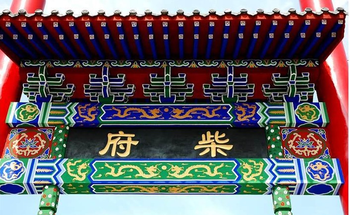 其三,柴府建筑即有極富裝飾性的房頂,又配以豐富多彩的色彩。主要建筑屋頂裝飾有十字形、丁字形兩種,其結(jié)構(gòu)以“懸山頂”為主。兩邊的建筑結(jié)構(gòu)則為“硬山頂”。建筑物上涂漆及彩畫(huà)多用紅、綠、黃、藍(lán)色,即使在冬季也有生機(jī)之感。