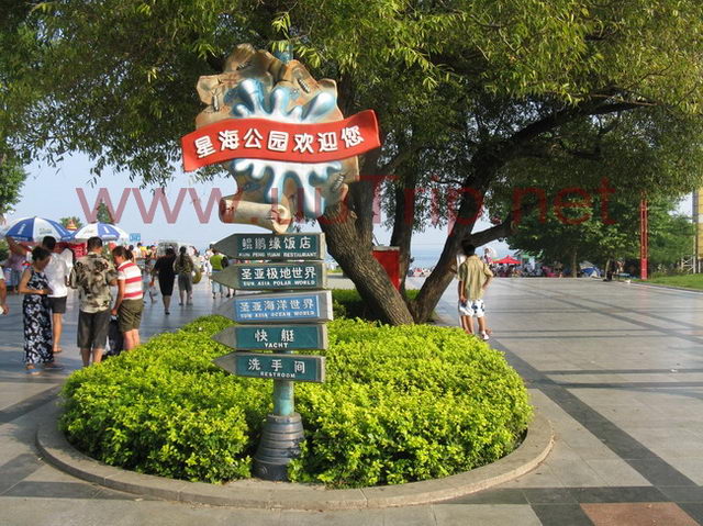 海水浴場沙灘平坦,水流緩慢,水深適中。每年夏季,游人絡(luò)繹不絕。 游客在這里可以登上望海亭觀看大海的寬廣,觀賞星海石、日石、月石,還可以到圣亞海洋世界探尋海底的奇異生態(tài)。